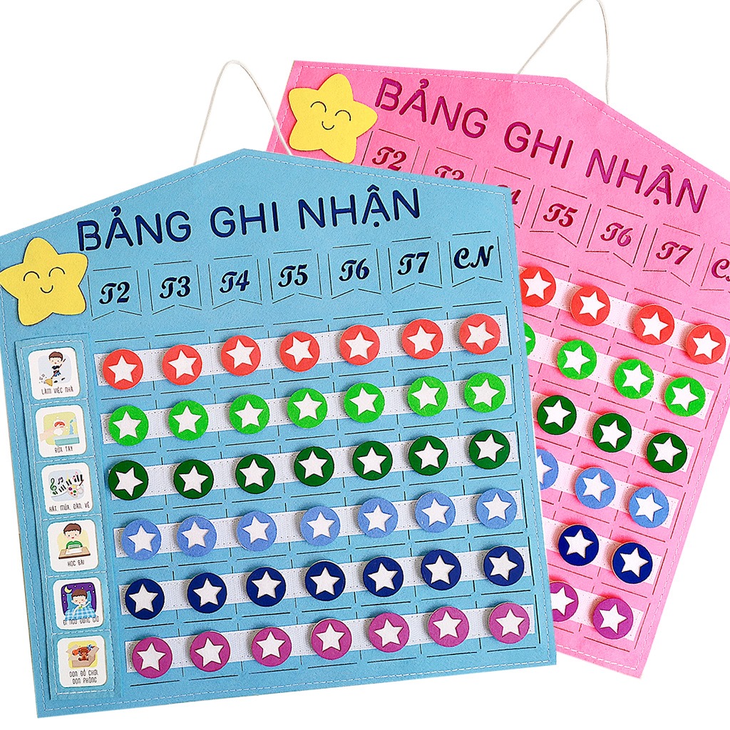 - 1 bảng kích thước 38x40cm chia 7 ngày trong tuần, mỗi ngày 6 hoạt động.