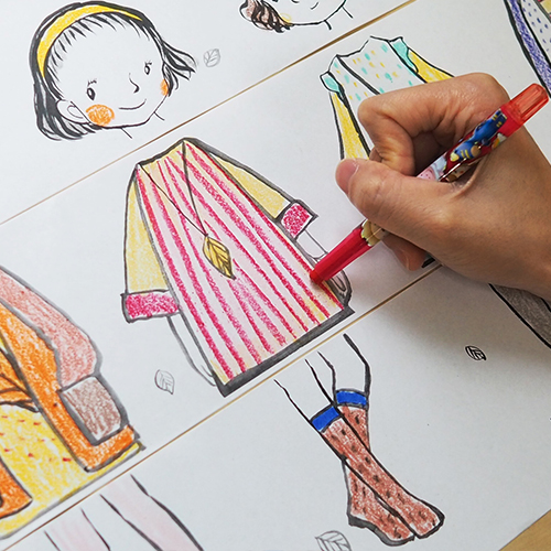 Các tín đồ thời trang nhí có thể tô màu và “khoe” tác phẩm của mình với các thành viên trong gia đình, bạn bè.