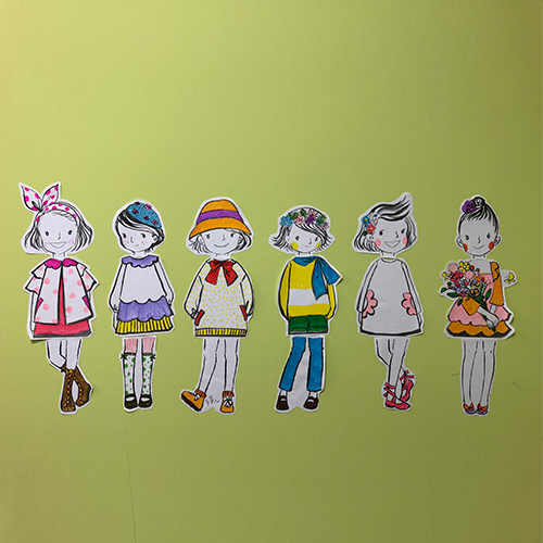 Ghép chi tiết giữa các cuộn để tạo thành người mẫu thời trang theo ý tưởng thiết kế riêng của bé.