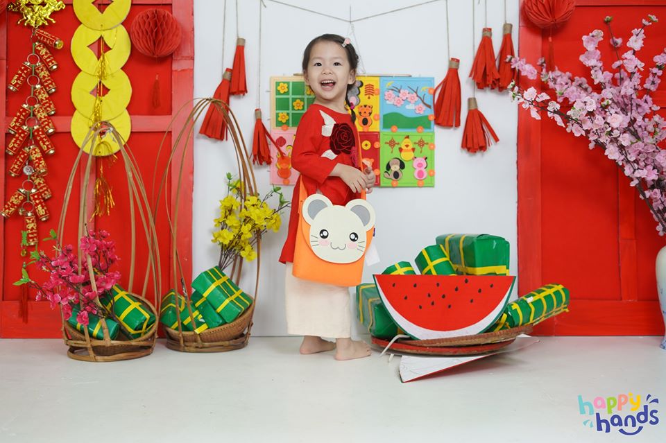 Sau khi xếp thành hình khối hộp, bố mẹ có thể mở một cạnh của khối hộp để thành nắp hộp, mở ra đóng vào được bằng cúc vải. Bé có thể dùng để đựng các món đồ chơi yêu thích của mình bên trong. Một chiếc hộp Tết quả là thú vị.