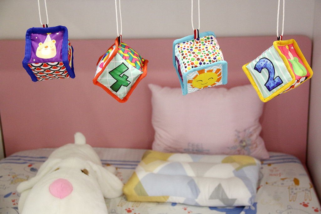 Thiết kế sáng tạo giúp bé phát triển toàn diện các giác quan. Mỗi khối vuông được đặt bên trong các loại phụ kiện tạo tiếng động khác nhau gây thích thú cho bé.