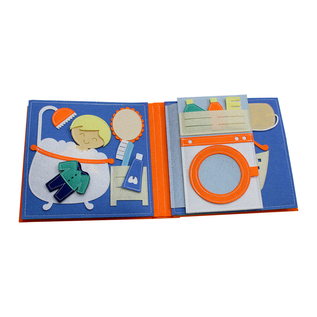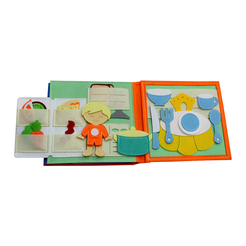 - Mỗi trang là một không gian khác nhau như phòng ngủ, nhà bếp, phòng vệ sinh,... được thiết kế thẩm mỹ trên nền vải dạ an toàn với chỉ cotton dày dặn chắc bền.