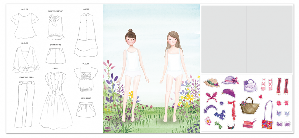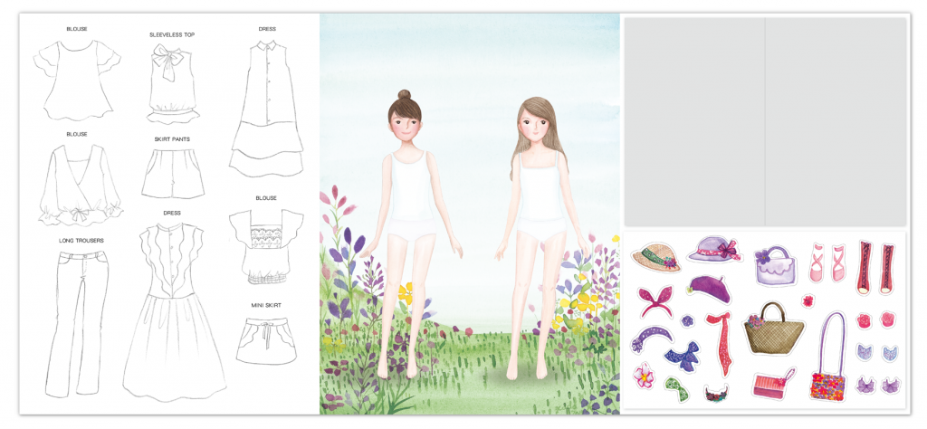 2/ Hướng dẫn chơi Sách vẽ thiết kế dán hình quần áo và phụ kiện vườn hoa