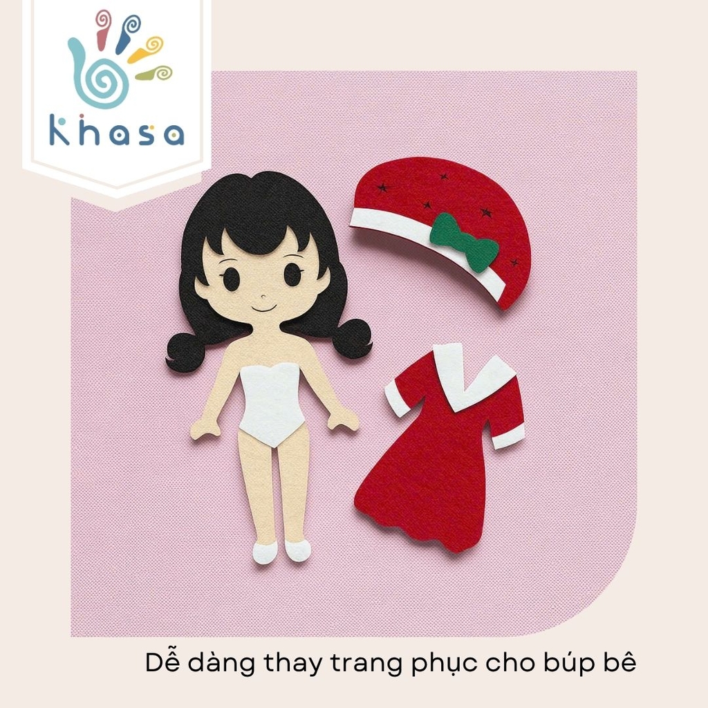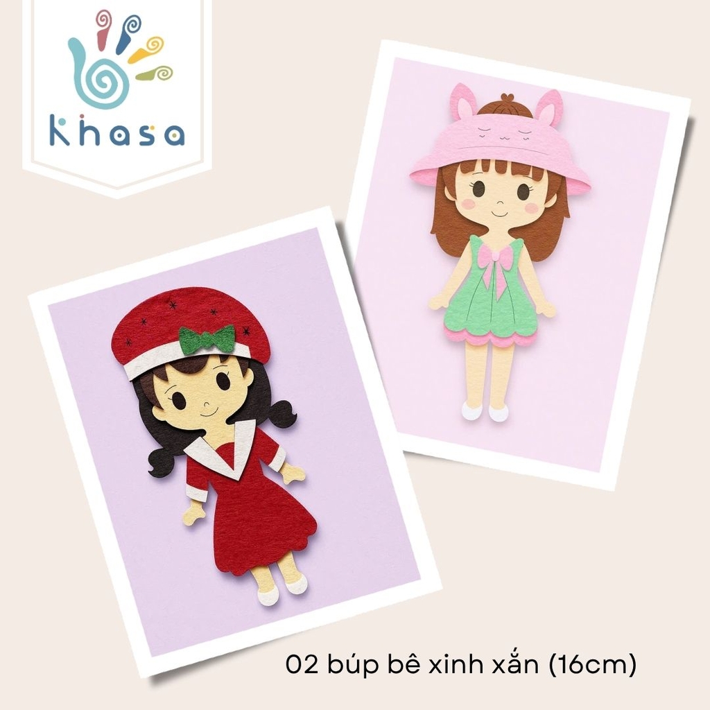 • 02 búp bê vải dạ cố định (được may chắc chắn, kích thước vừa tay bé)