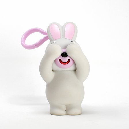 - Chỉ cần dùng tay bóp nhẹ vào phần bụng từ 2 bên là ngay lập tức đôi tay của bạn thỏ sẽ mở ra, để lộ khuôn mặt thân thiện.
